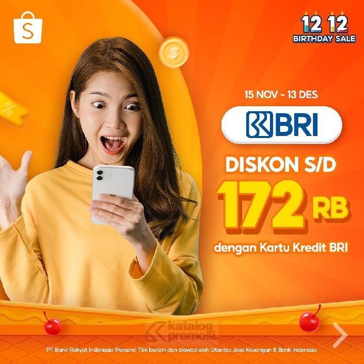 https://atid.me/go/uKBrkqg3Hai, Sobat Shopee! Udah siap belanja seru di Shopee 12.12 Birthday Sale? Kali ini ada penawaran spesial buat kamu yang punya kartu kredit Bank BRI. Belanja semua produk kebutuhanmu, bayar dengan kartu kredit BRI, dan nikmati diskon hingga 172 ribu!