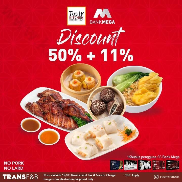 TASTY KITCHEN Promo DISKON 50% + 11% khusus untuk pengguna Kartu Kredit Bank Mega.