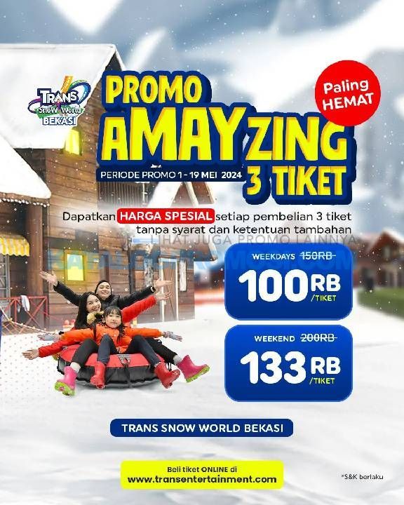TRANS SNOW WORLD BEKASI Promo AMAYZING! Harga Spesial Beli 3Tiket cuma Rp. 100.000 per tiket.