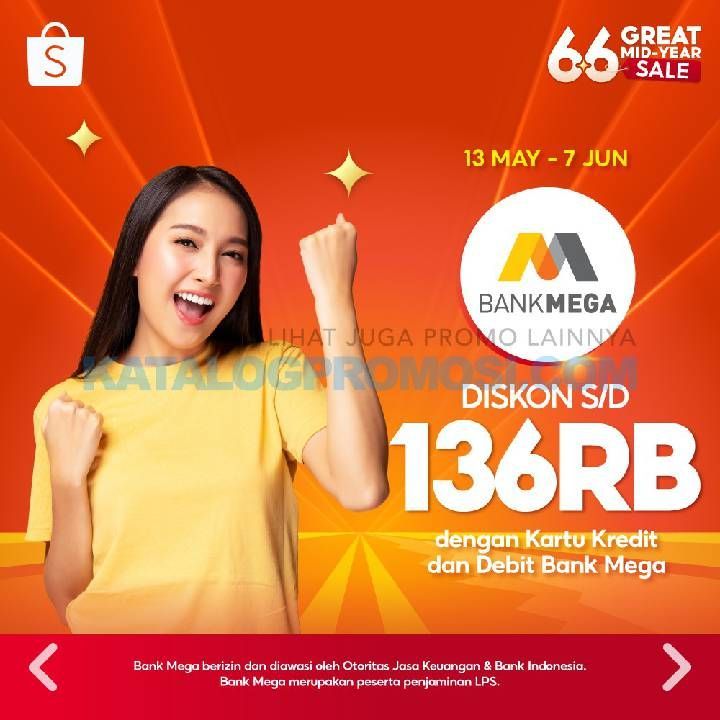 Belanja di Shopee 6.6 Great Mid-Year Sale dengan Bank Mega Diskon hingga 136K.