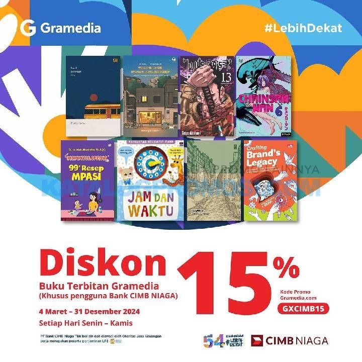 Buku-Buku Terbitan Gramedia Spesial Diskon 15% Khusus Pengguna Bank CIMB Niaga.
