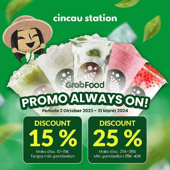 CINCAU STATION Promo ALWAYS ON – DISKON hingga 25% khusus pemesanan via GRABFOOD.