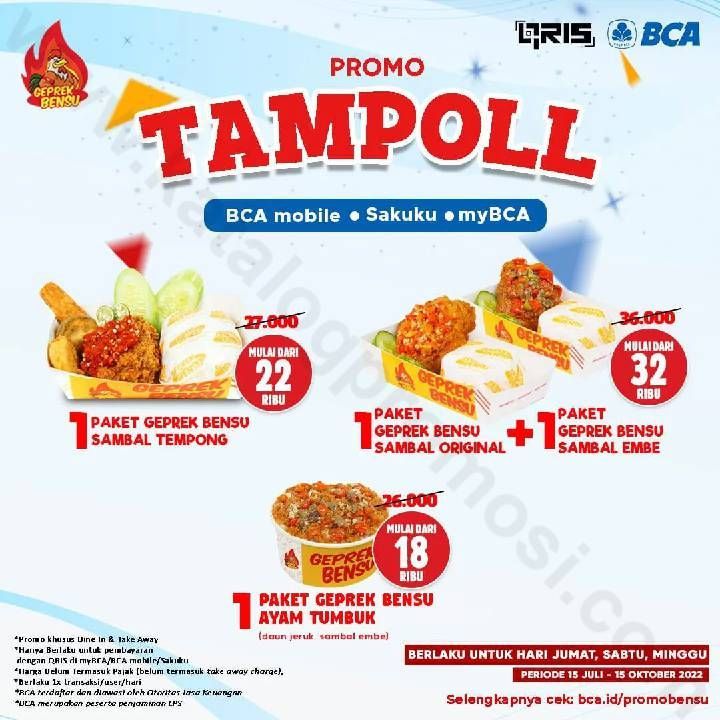 GEPREK BENSU Promo TAMPOLL – Harga Paket mulai Rp 18.000 untuk transaksi dengan BCA Moblie, SAKUKU, MyBCA.