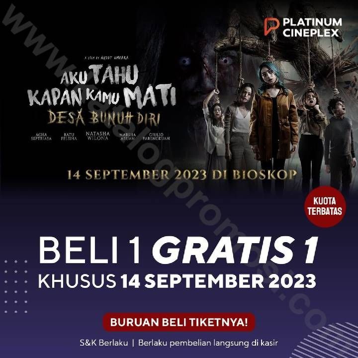 PLATINUM CINEPLEX Promo BELI 1 GRATIS 1 untuk tiket film Aku Tahu Kapan Kamu Mati : Desa Bu**h Diri.