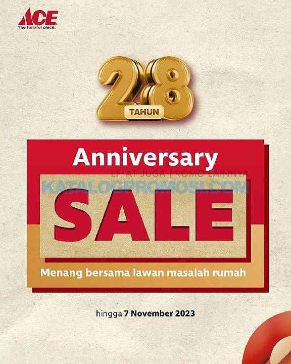 Promo spesial #ACE28ThMenangBersama bisa hemat hingga 70% untuk kebutuhan rumah dan gaya hidupmu. Promo terbatas hanya sampai tanggal 7 November 2023 aja ya, ACEs. Ekslusif anniversary 28 tahun @aceindonesia, pasti hemat, pasti puas #BisaKejadian yuk, serbu sekarang! Saatnya memperingati #ACE28ThMenangBersama lawan masalah rumah ACE, The Helpful Place.