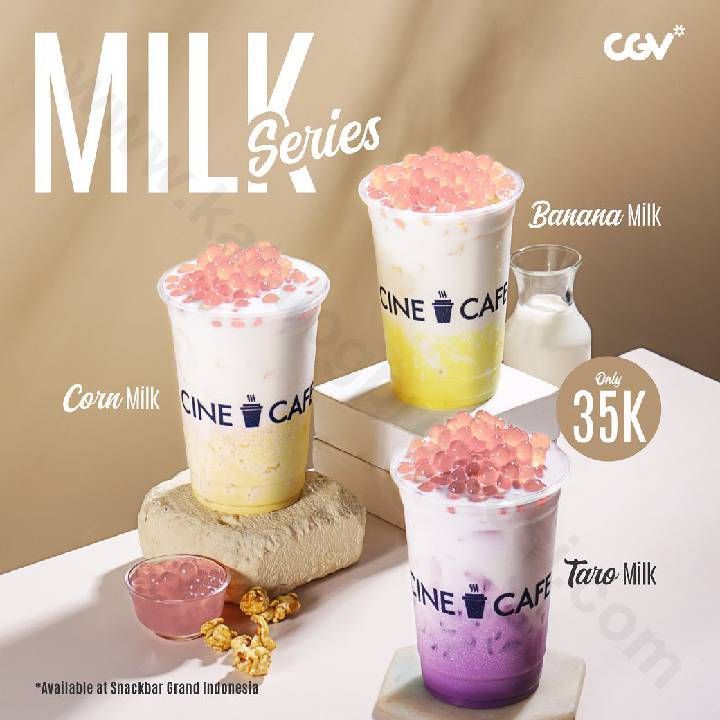 Siapa yang udah nyobain minuman Milk Series CGV? ♀️ Coba spill kamu palingg suka rasa apa? Yang belum nyobain, kamu bisa beli di Snack Bar CGV Grand Indonesia!