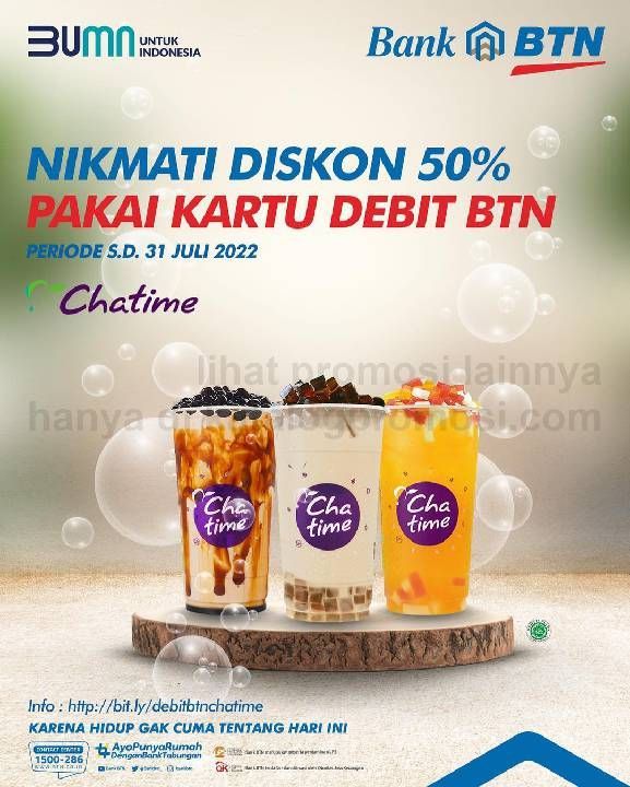 Promo CHATIME DISKON 50% untuk semua menu dengan KARTU DEBIT BTN.