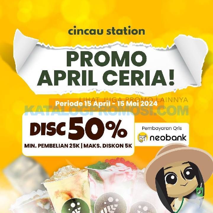 Promo CINCAU STATION APRIL CERIA! DISKON 50% dengan QRIS NEOBANK.