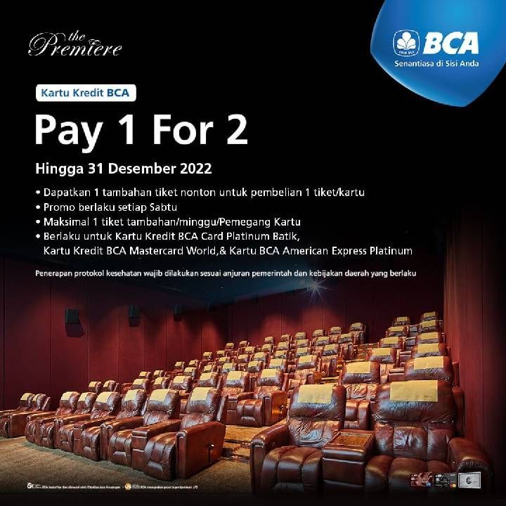 Complimentary tiket nonton sebanyak 1 tiket untuk pembelian 1 tiket per Kartu Kredit BCA