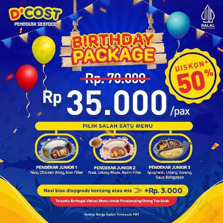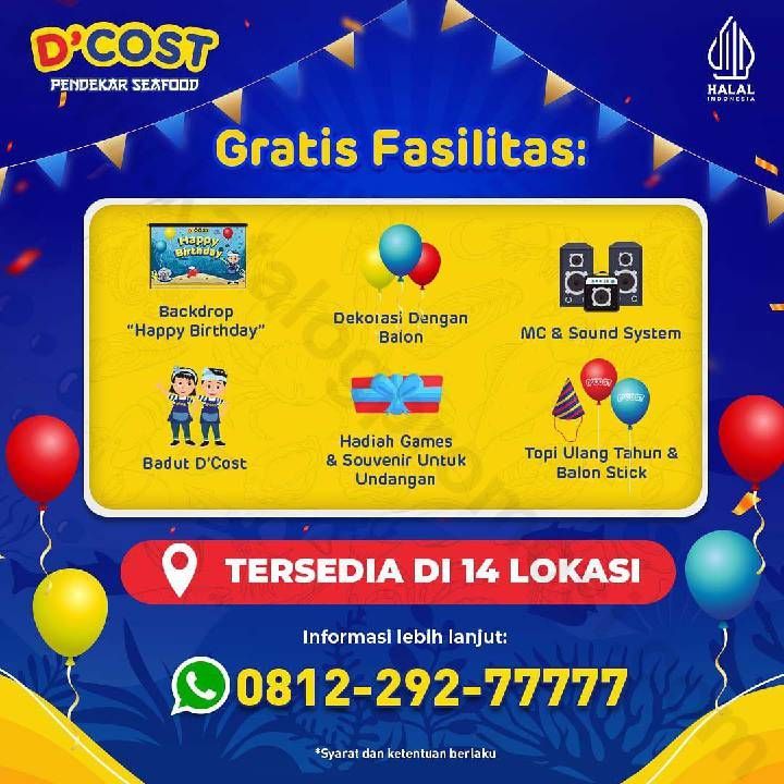 ULANG TAHUN CERIA, TANPA RIBET Buat Seafood Lovers yang bingung mau ngerayain hari ulang tahunnya dimana, D’Cost bisa loh jadi tempat yang menyenangkan buat kalian ngerayain