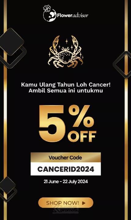 Promo FlowerAdvisor Hadiah Ulang Tahun untuk Cancer Diskon 5%.