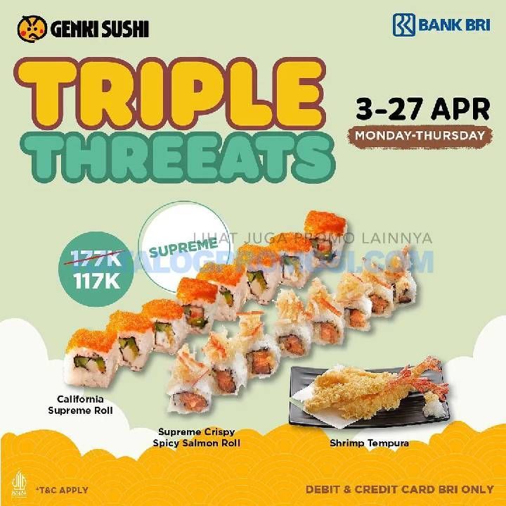 PROMO GENKI SUSHI TRIPLE THREEATS – mulai Rp. 100.000 DENGAN KARTU BRI
