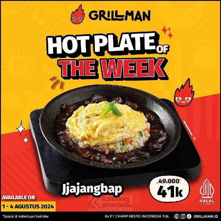 Promo GRILLMAN HOT PLATE OF THE WEEK! Harga Spesial cuma Rp. 41Ribuan, berlaku mulai tanggal 01 – 04 Agustus 2024