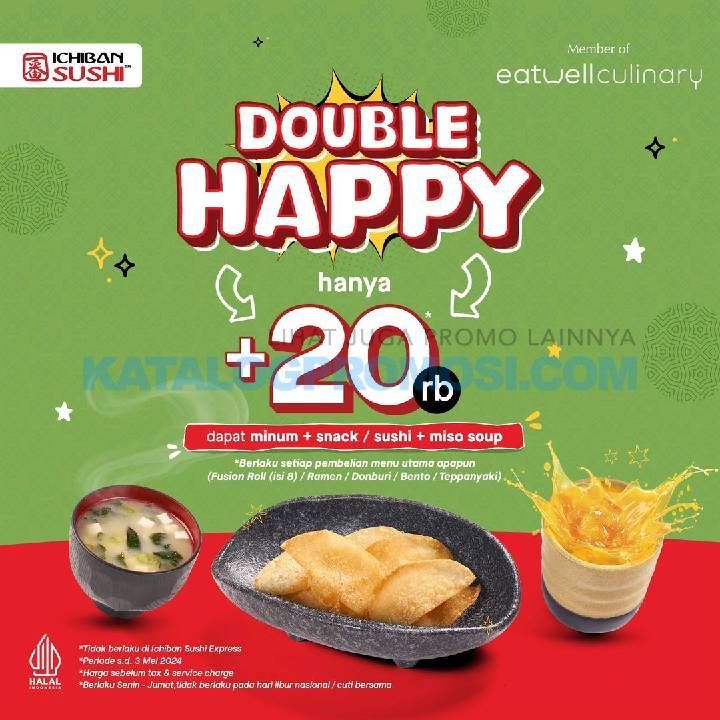 Promo ICHIBAN SUSHI DOUBLE HAPPY – TAMBAH +Rp. 20RB bisa dapat 2 MENU*