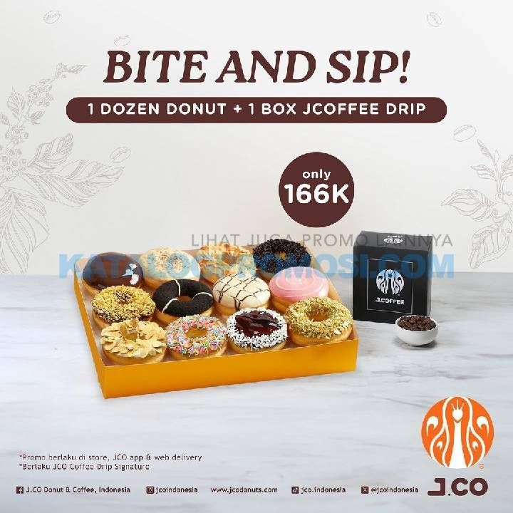 Promo JCO BITE AND SIP! PAKET DONUTS/JPOP + JCOFFEE DRIP mulai Rp. 128.000.