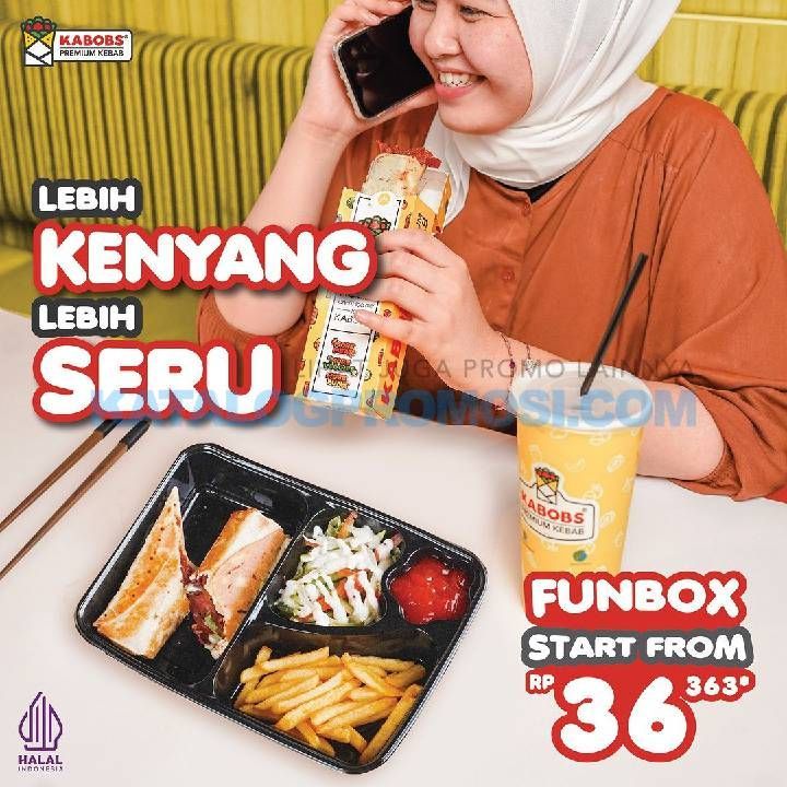 LIFE SAVER BUAT MENU MAKAN SIANG KAMU Siapa nih yang udah nunggu-nunggu jam makan siang, tapi bingung mau makan siang sama apa? Tenang, tenang Kabobs punya banyak promo menu favorite kamu nih, salah satunya ada FUNBOX