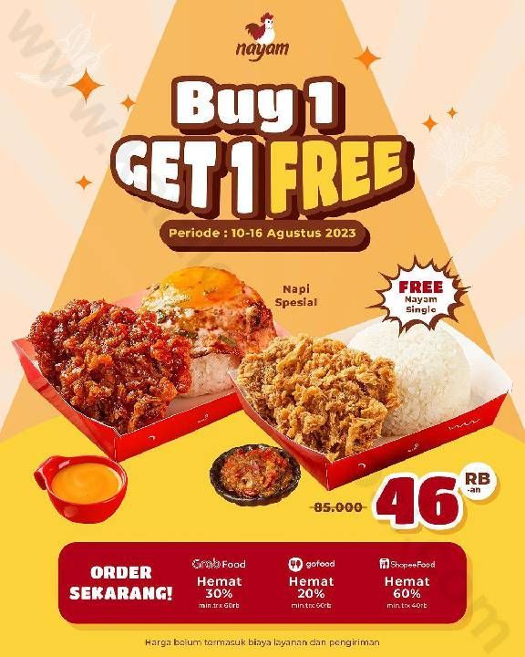 Promo NAYAM BELI 1 GRATIS 1 + EXTRA DISKON hingga 60% khusus pemesanan via ONLINE DELIVERY