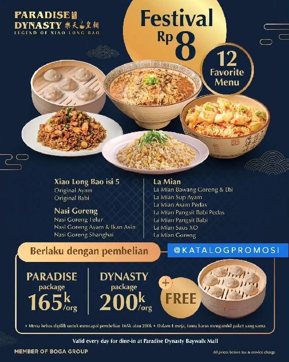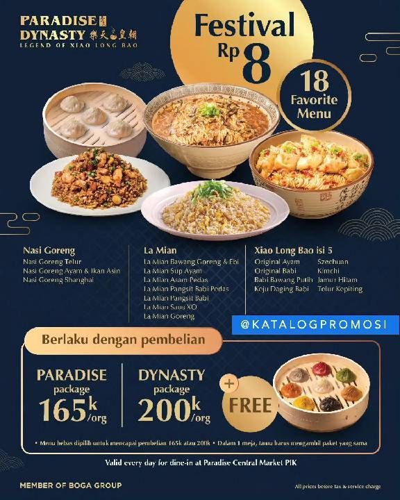 Promo PARADISE DYNASTY FESTIVAL 8 – 18 Menu Favorit HANYA Rp8,- saja.