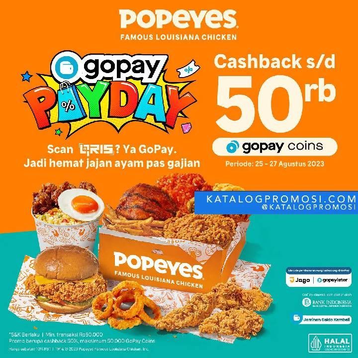 Promo POPEYE’S GOPAY PAYDAY – CASHBACK HINGGA 50ribu Gopay Coins!!.