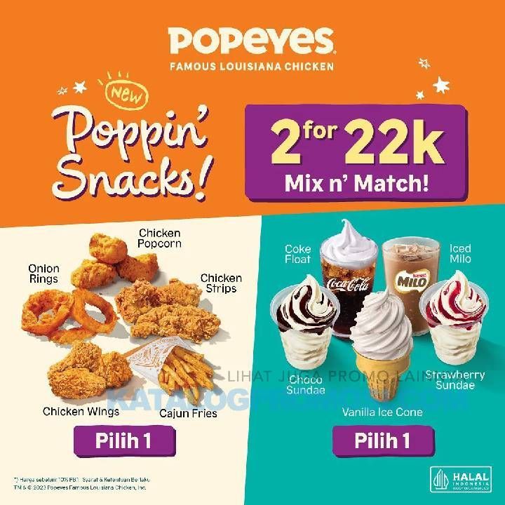 Promo POPEYE’S NEW POPPIN’ SNACKS – MIX AND MATCH 2 MENU CUMA 22RIBUAN AJA