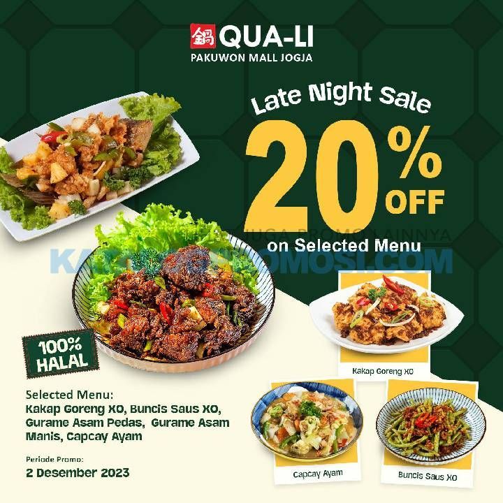 Promo QUA-LI Pakuwon Mall Jogja Late Night Sale Discount 20% Off On Selected Menu*