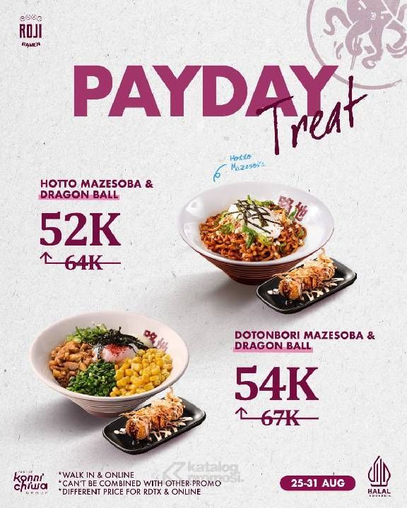 Promo ROJI RAMEN PAYDAY TREAT – Paket Spesial mulai dari Rp. 52K aja.