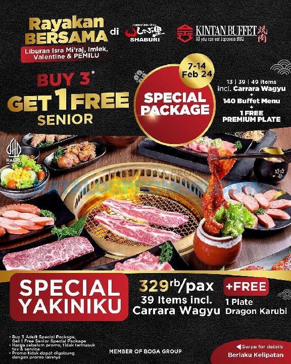 PROMO SHABURI dan KINTAN BUFFET BUY 3 GET 1 FREE SENIOR PACKAGE.