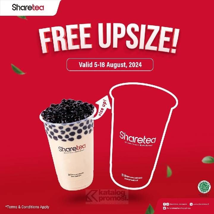 Setiap beli minuman Medium, kamu bisa upsize ke ukuran Large GRATIS, lhoo. Lebih besar sizenya, lebih lama Sharetea temenin keseharian kamu!