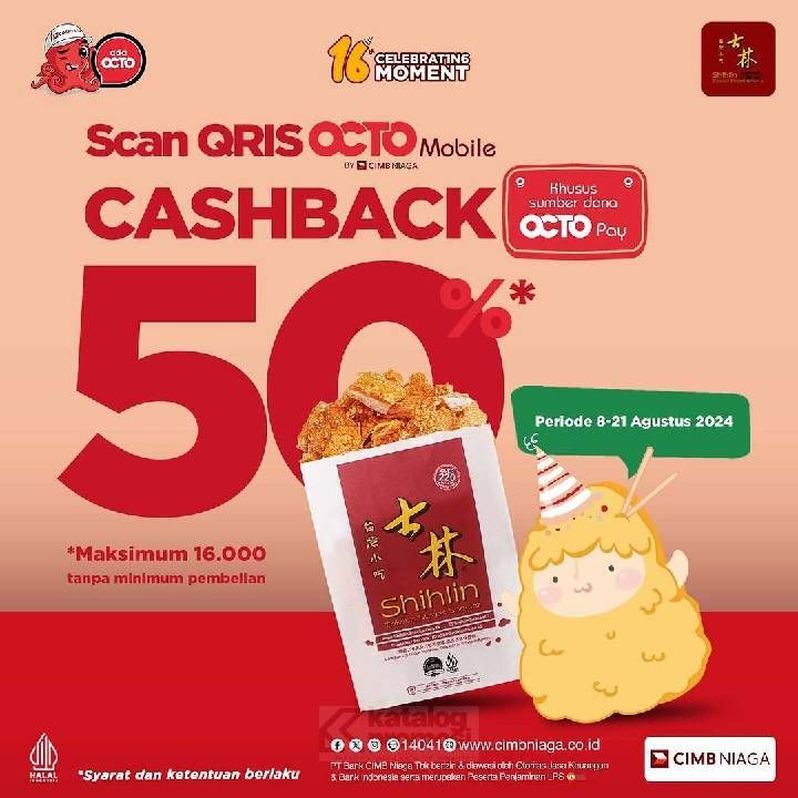 Promo SHIHLIN 16th ANNIVERSARY – CASHBACK 50% dengan QRIS OCTO MOBILE.