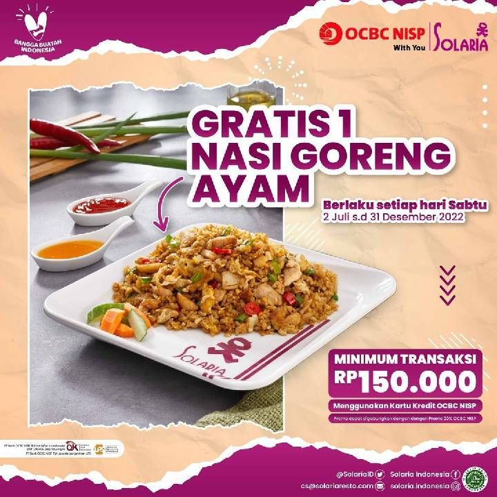 PROMO SOLARIA GRATIS NASI GORENG AYAM dengan Kartu Kredit OCBC NISP.