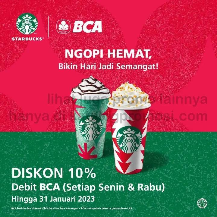 Promo STARBUCKS BCA – Dapatkan DISKON 10% dengan kartu debit BCA setiap hari Senin dan Rabu sd tanggal 31 Januari 2023