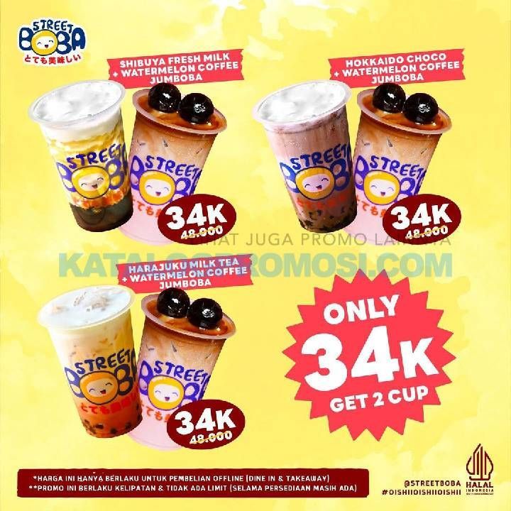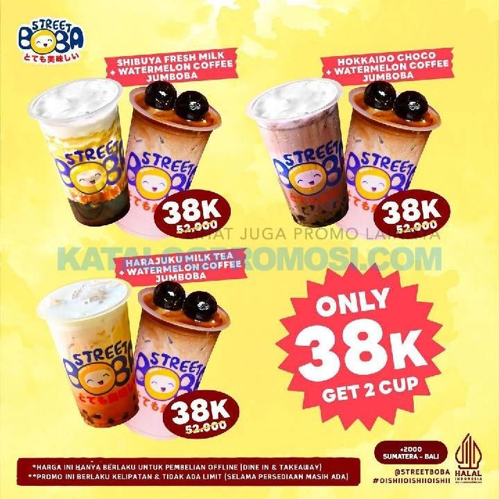 Bobagang bisa jajan hemat Street Boba mulai dari 34Ribu sudah dapat 2 cup menu reguler Street Boba.