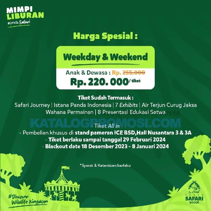tiket taman safari lagi promo nih gaes !! Kamu bisa memesan promo tiket Taman Safari Bogor dengan hanya Rp220 ribu saja.