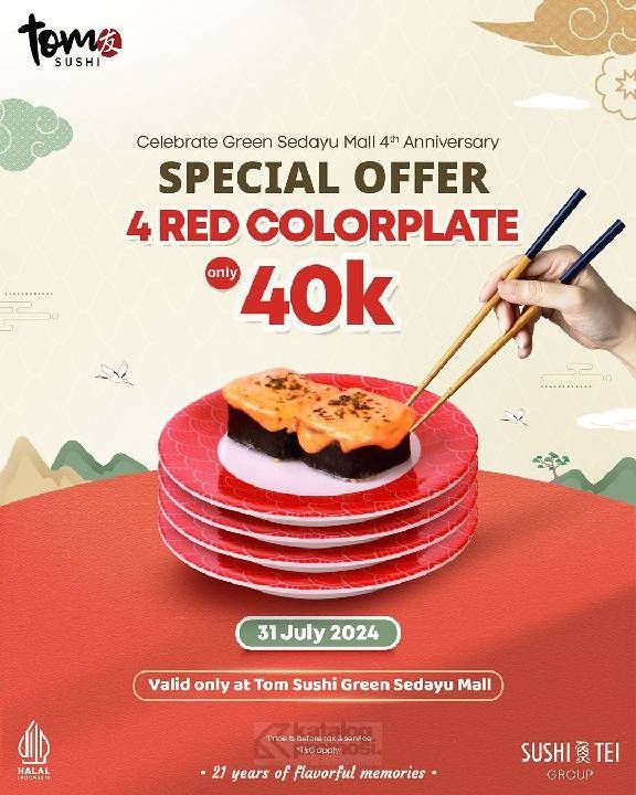 Promo Tom Sushi Green Sedayu Mall Special Price 4 Red Colorplate only Rp. 40K