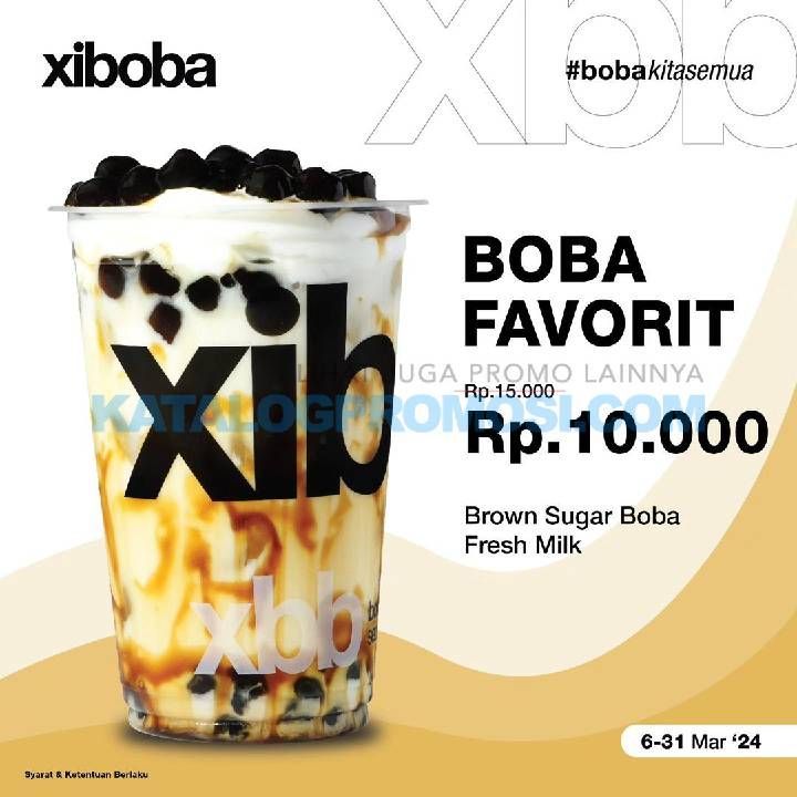 Promo XIBOBA FAVORIT! Harga Spesial Brown Sugar Boba Fresh Milk hanya Rp. 10.000 aja.