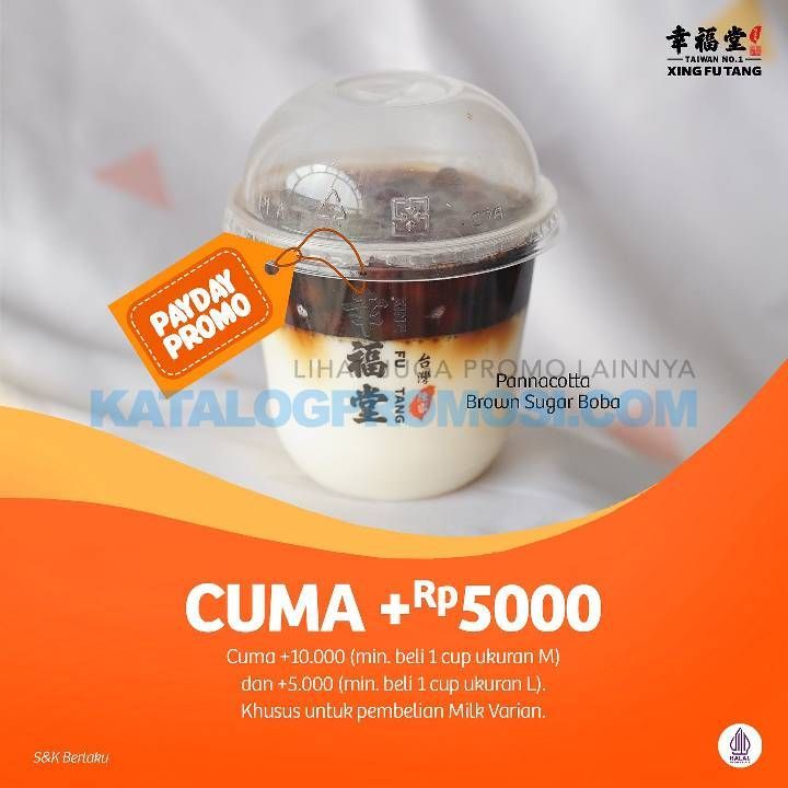 Spesial PAYDAY, Xing Fu Tang kembali menghadirkan promo tebus murah Pannacotta Brown Sugar Boba. Kali ini cuma + 5.000 untuk pembelian 1 Large cup dan +10.000 untuk pembelian 1 Medium cup (Milk Varian)