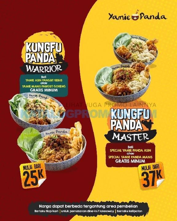 Ini jurus jitu makan Yamie Panda lebih hoki. Pesan menu KungPan alias Kungfu Panda. Beli yamie gratis minum. Mau yang yamie asin atau manis bisa! Menu tersedia di semua chapter Semarang & Jogja (kecuali Timoho).