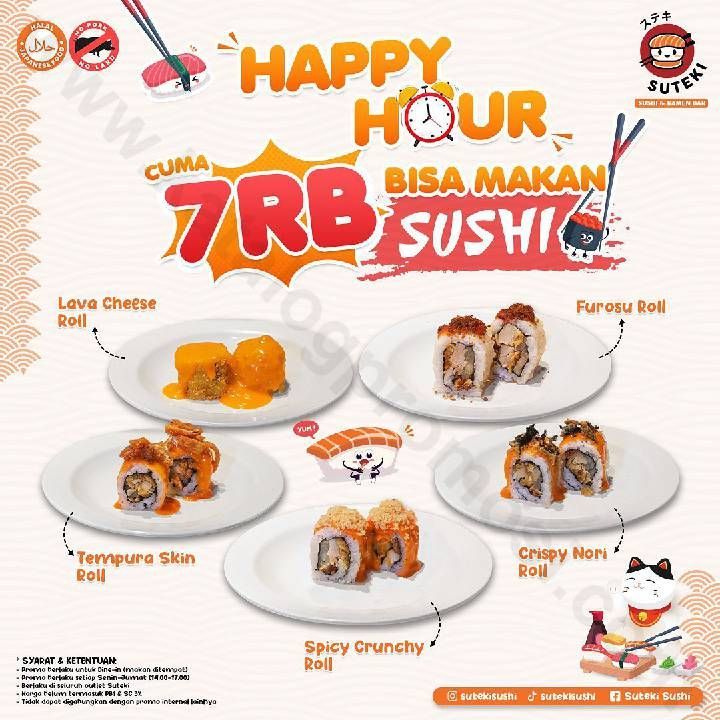 Makan sushi cuma 7Ribu aja!! Yapp cuma di Suteki aja kamu bisa nikmati Promo Happy Hour makan sushi cuma 7Ribu aja!