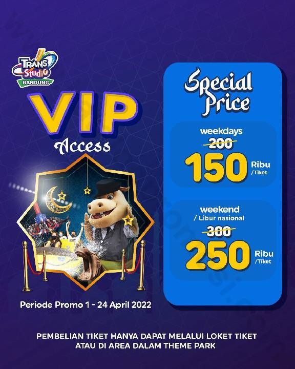 TRANS STUDIO BANDUNG Promo SPECIAL PRICE untuk VIP ACCESS mulai dari Rp 150.000/tiket.