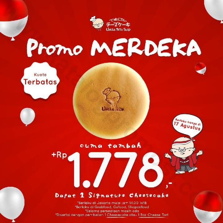 UNCLE TETSU Promo MERDEKA! cuma tambah +Rp. 1.778 bisa dapat Signature Cheesecake